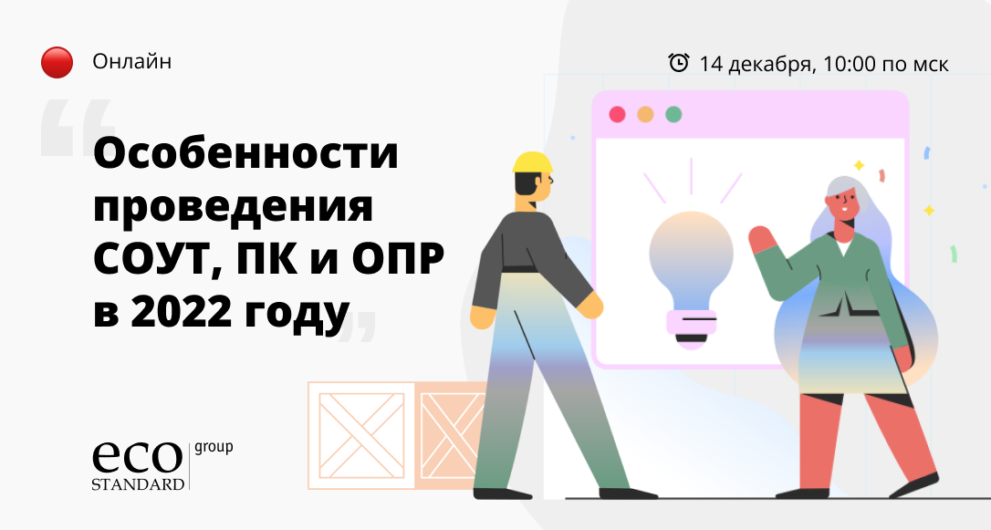 | ⭕ Роман Ушаков, спикер мероприятия и заместитель генерального директора EcoStandard group по нормативной и методической работе, расскажет об изменениях в законодательстве, особенностях процедур СОУТ, ПК и ОПР в 2022 году и пилотном проекте по оценке производственных рисков Минтруда России.