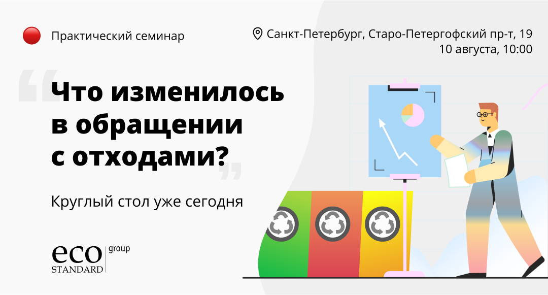 | ⭐ Уже сегодня, 10 августа, в учебном класс EcoStandard group в Санкт-Петербурге состоится практический семинар «Новое в законодательстве: вторичные ресурсы, вторичное сырье, побочные продукты».
