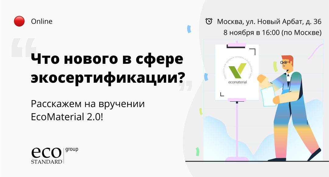 | ⭐ Приглашаем вас посетить мероприятие «Зеленая» сертификация: открытый диалог ведущих участников рынка и вручение сертификатов EcoMaterial". Событие призвано привлечь внимание к экомаркировке и отметить ответственных производителей, чьи материалы были признаны соответствующими требованиям экологического стандарта EcoMaterial 2.0.